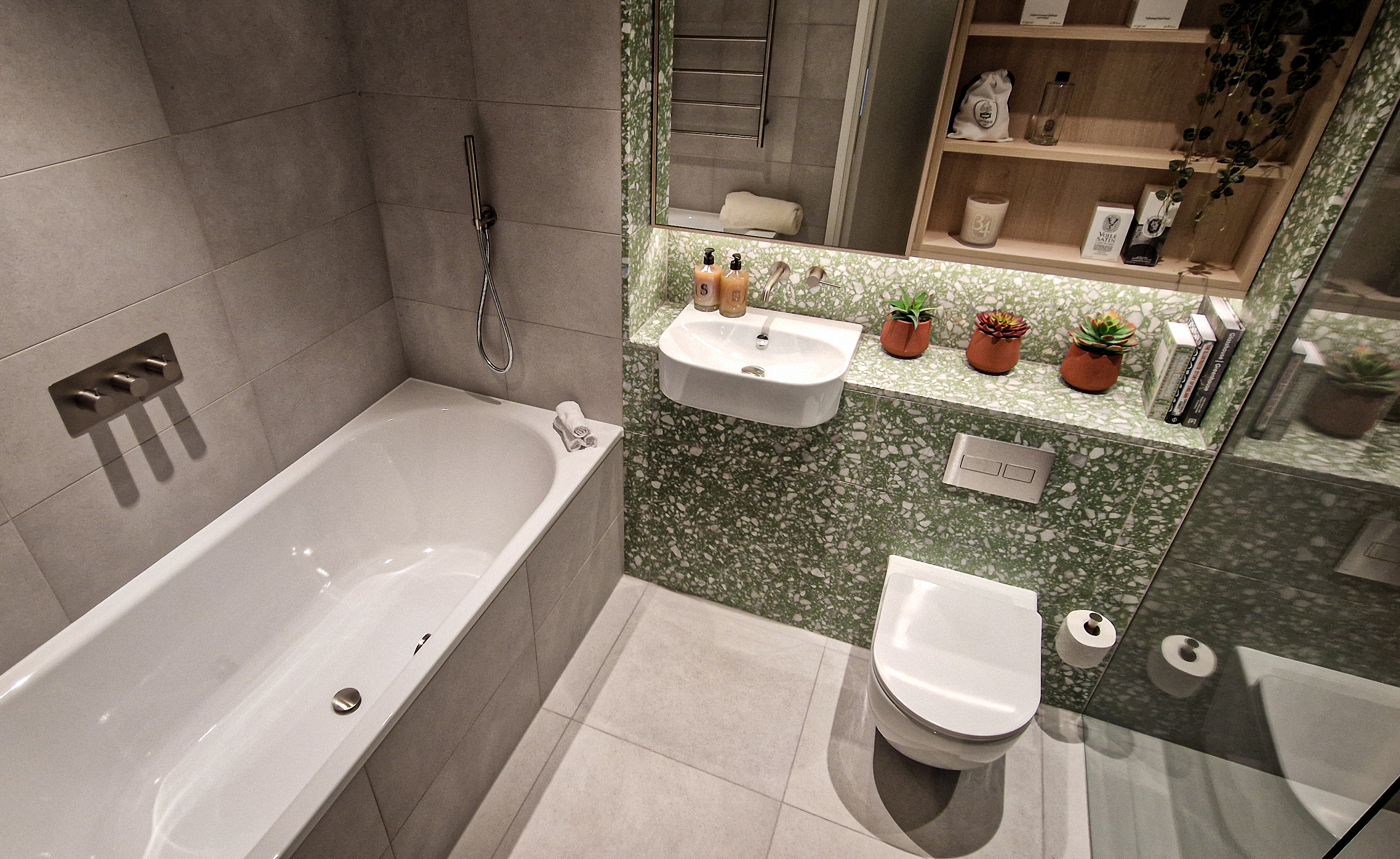 Bathrooms throughout the scheme were conceived as calm, tactile spaces—functional, elegant, and designed to age beautifully.