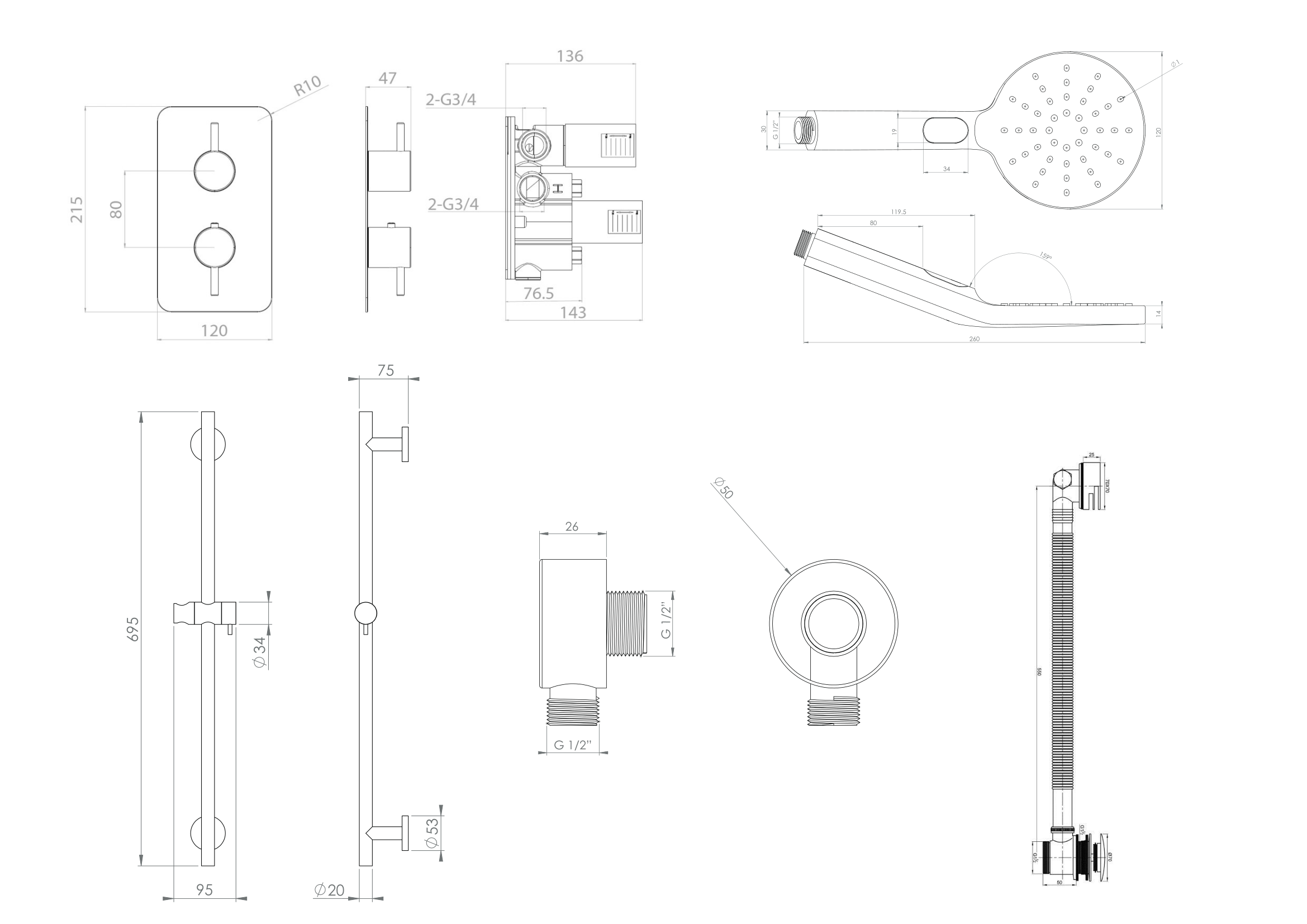 - Stock code: CO231.MB COS round shower slider rail - Matte Black