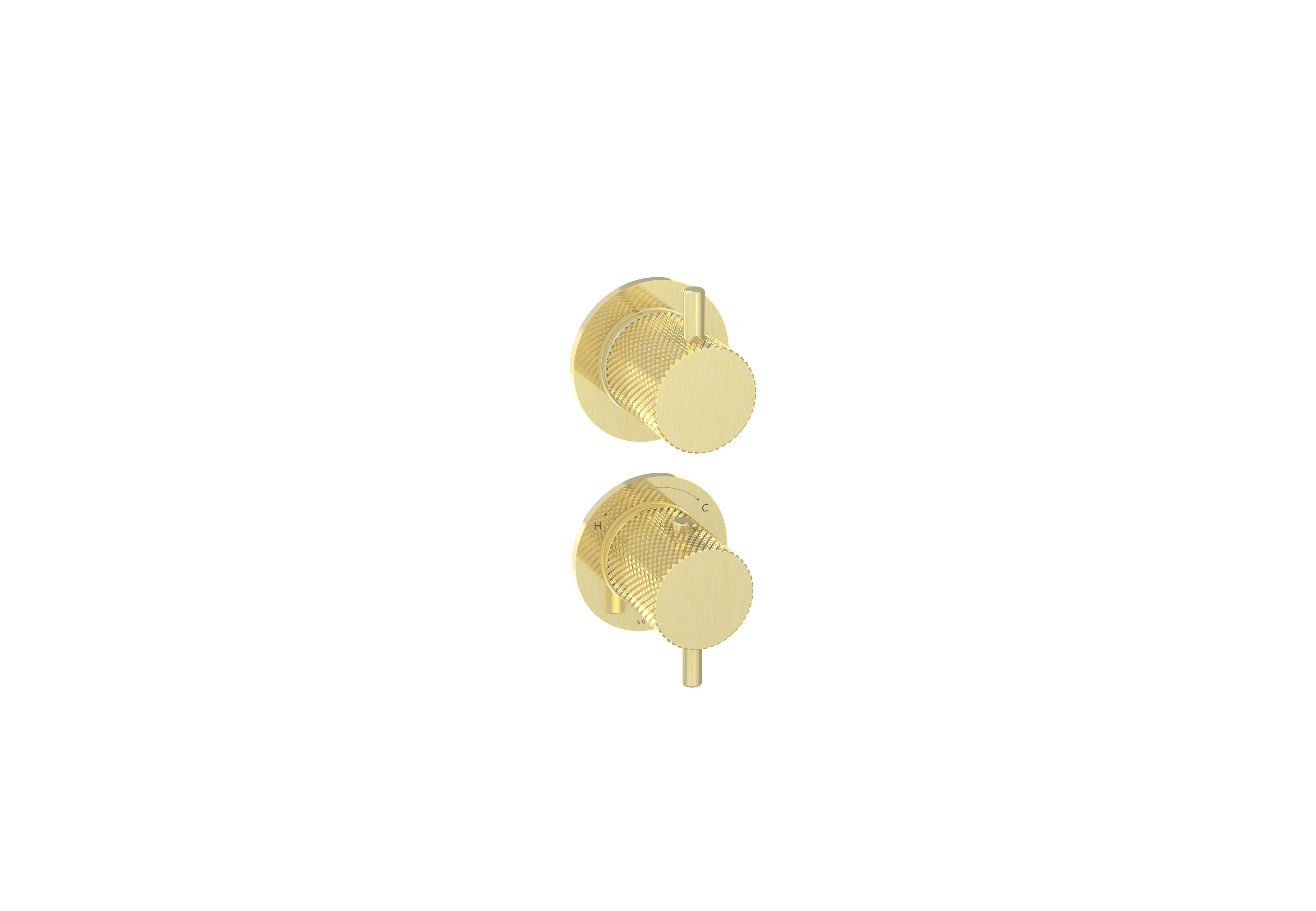 COS 2 Way Thermostatic Shower RING Valve KIT - w/ Knurled Handle - Landscape - Brushed Brass