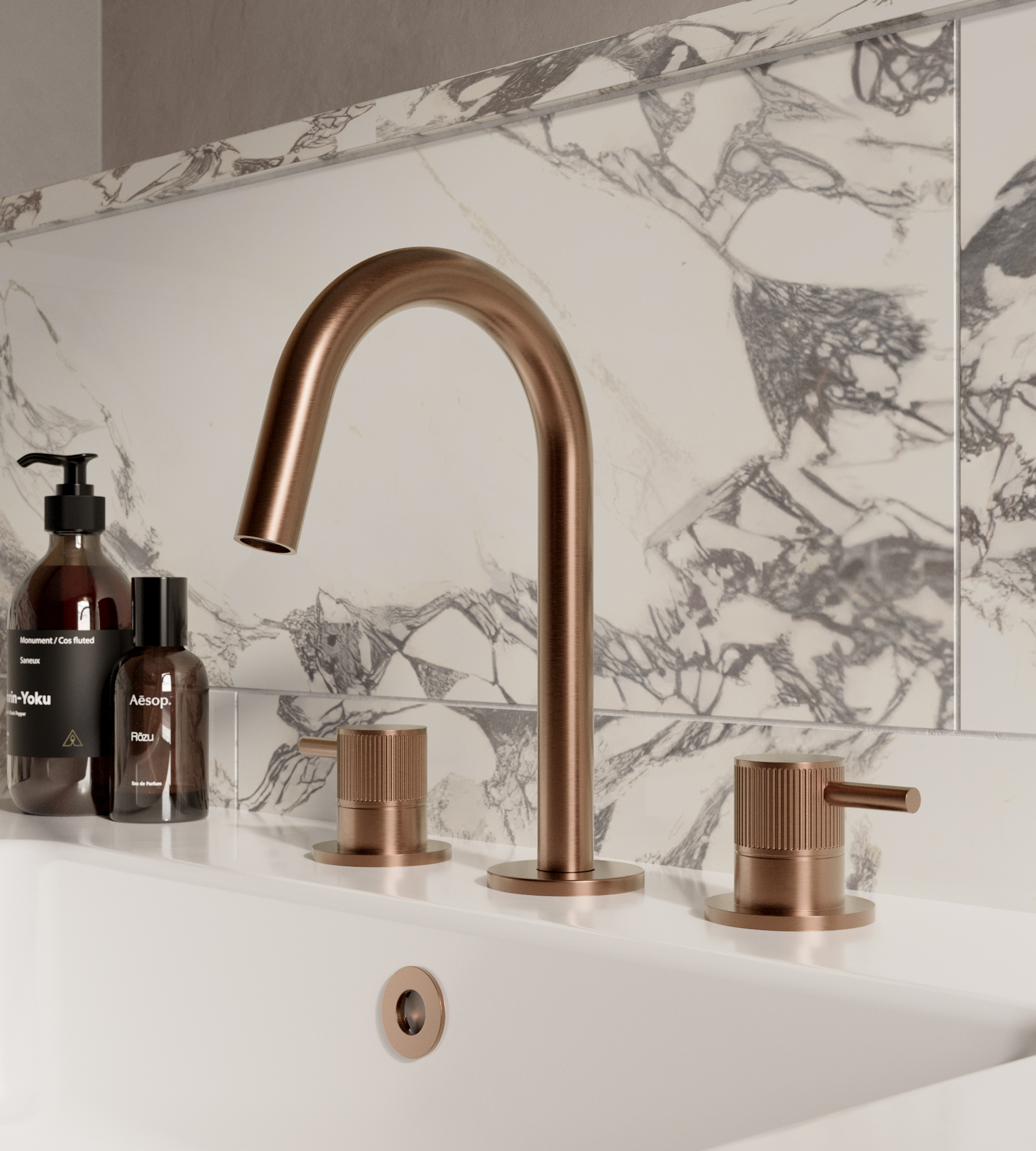 The new Cos basin mixer collection showcases a sleek, streamlined body with an intricately designed spout. It offers three distinct handle options—Classic, Knurled, and Fluted—each available in five stunning finishes: Chrome, Brushed Brass, Brushed Bronze, Brushed Nickel, and Satin Black.