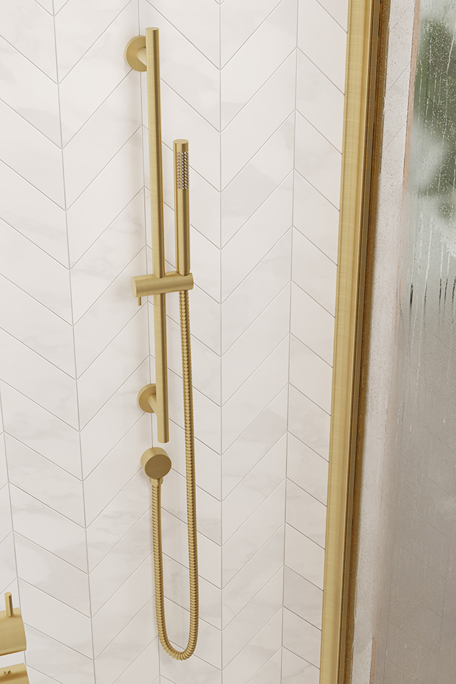 This COS shower slider rail in brushed brass works with our COS shower handsets to create a simplistic shower set up. It has a movable bracket & holder so you can adjust the height of your shower handset easily, whilst the rail itself stays fixed to the wall.