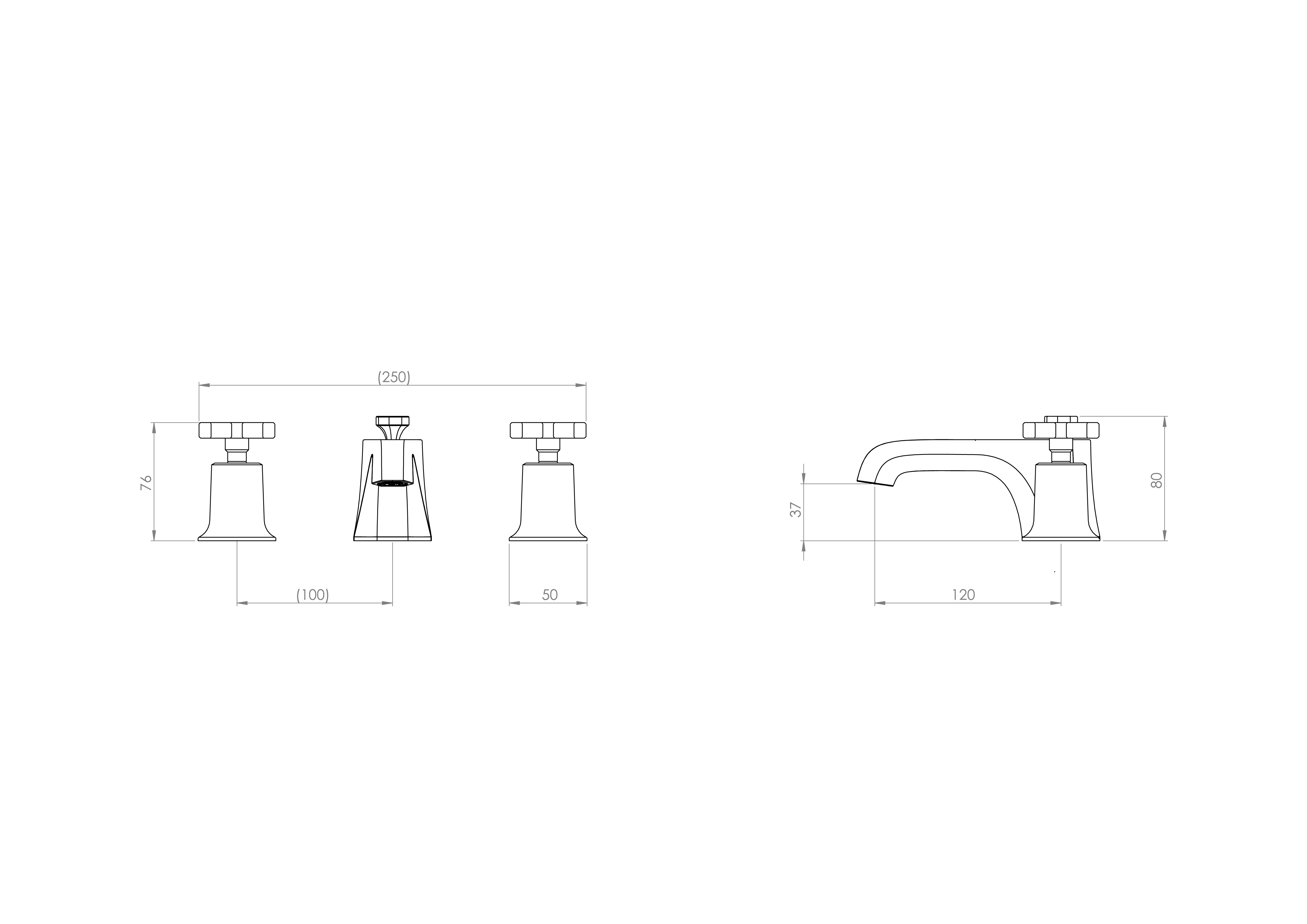 The 3 tap hole basin mixer with cross handles will stand out on its own or can match both the one way and two way thermostatic shower valves that feature the cross handles.