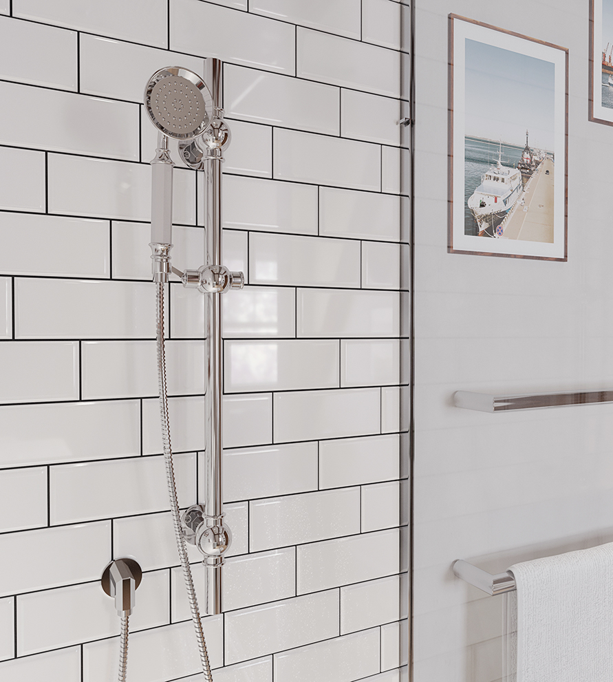 This CROMWELL shower slider rail in chrome works with our CROMWELL shower handset to create a simplistic shower set up. It has a movable bracket & holder so you can adjust the height of your shower handset easily, whilst the rail itself stays fixed to the wall.