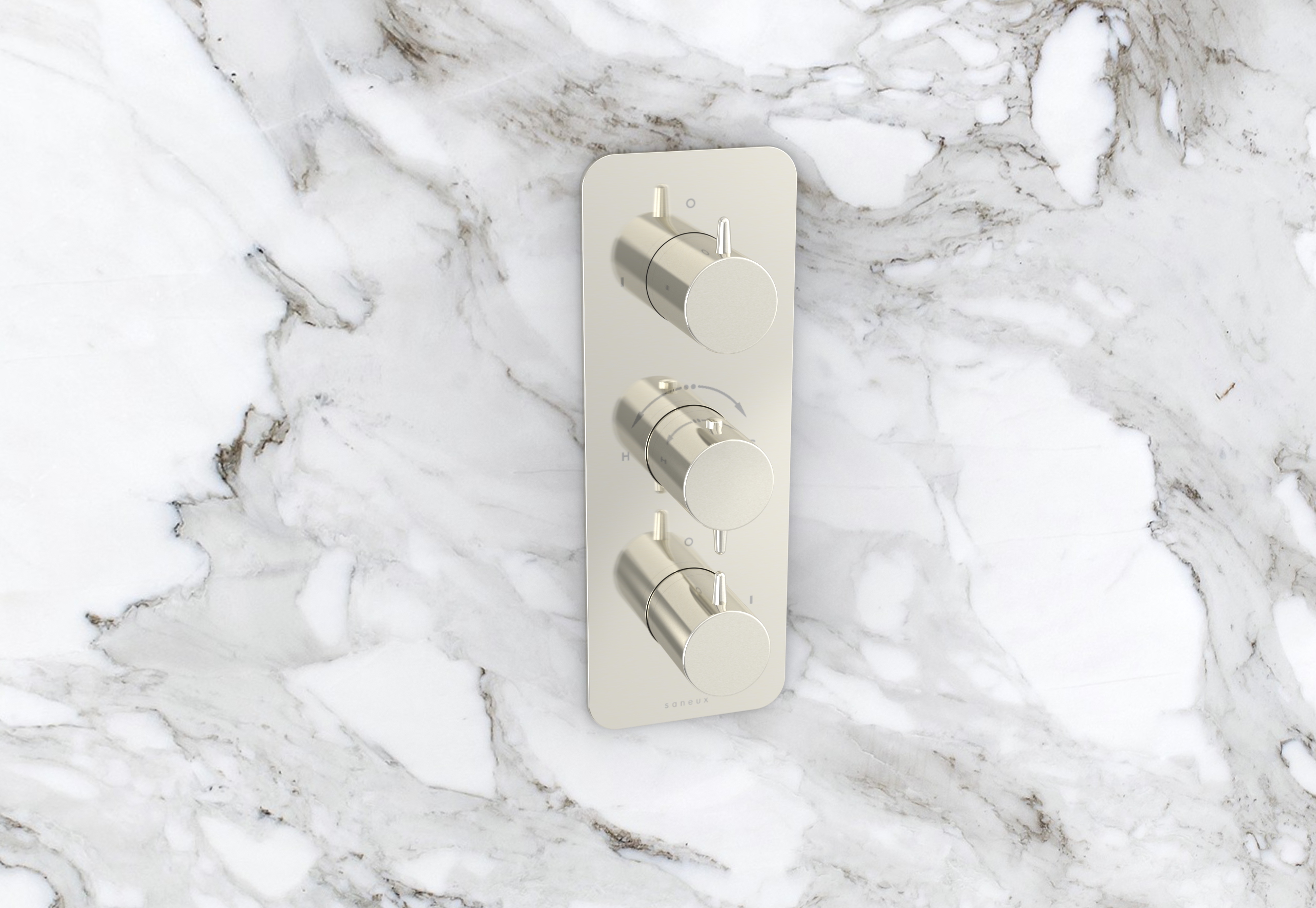 EDEN 3 way thermostatic shower valve kit in portrait - Brushed Nickel