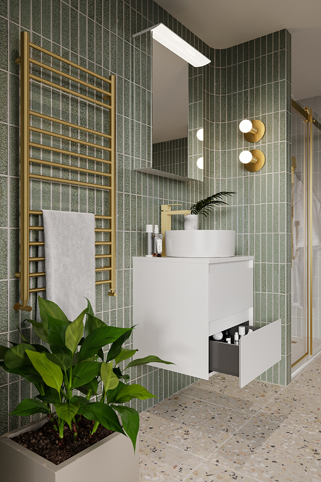 The EMBER 500x1000mm pre-filled towel rail & heating element in brushed brass is certainly a stand out piece to have featured in your bathroom.