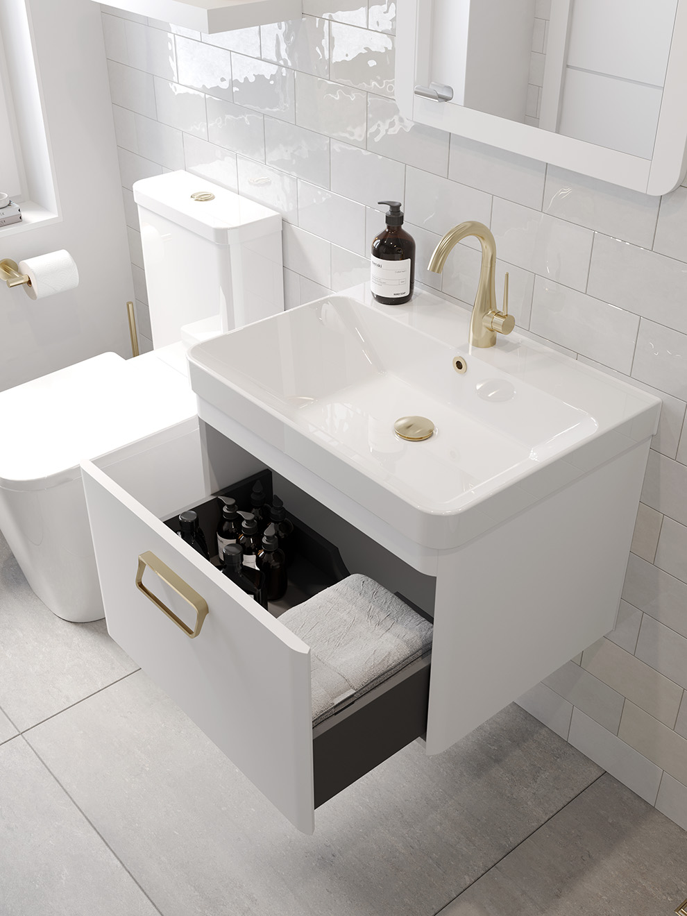 This 60cm 1 drawer wall mounted unit provides you with practicality by offering plenty of storage space to keep your bathroom tidy, yet still having a modern and stylish look through it's clean lines and curved corners. It has a deep drawer for storing toiletries, and the matte white finish will work in any bathroom interior.