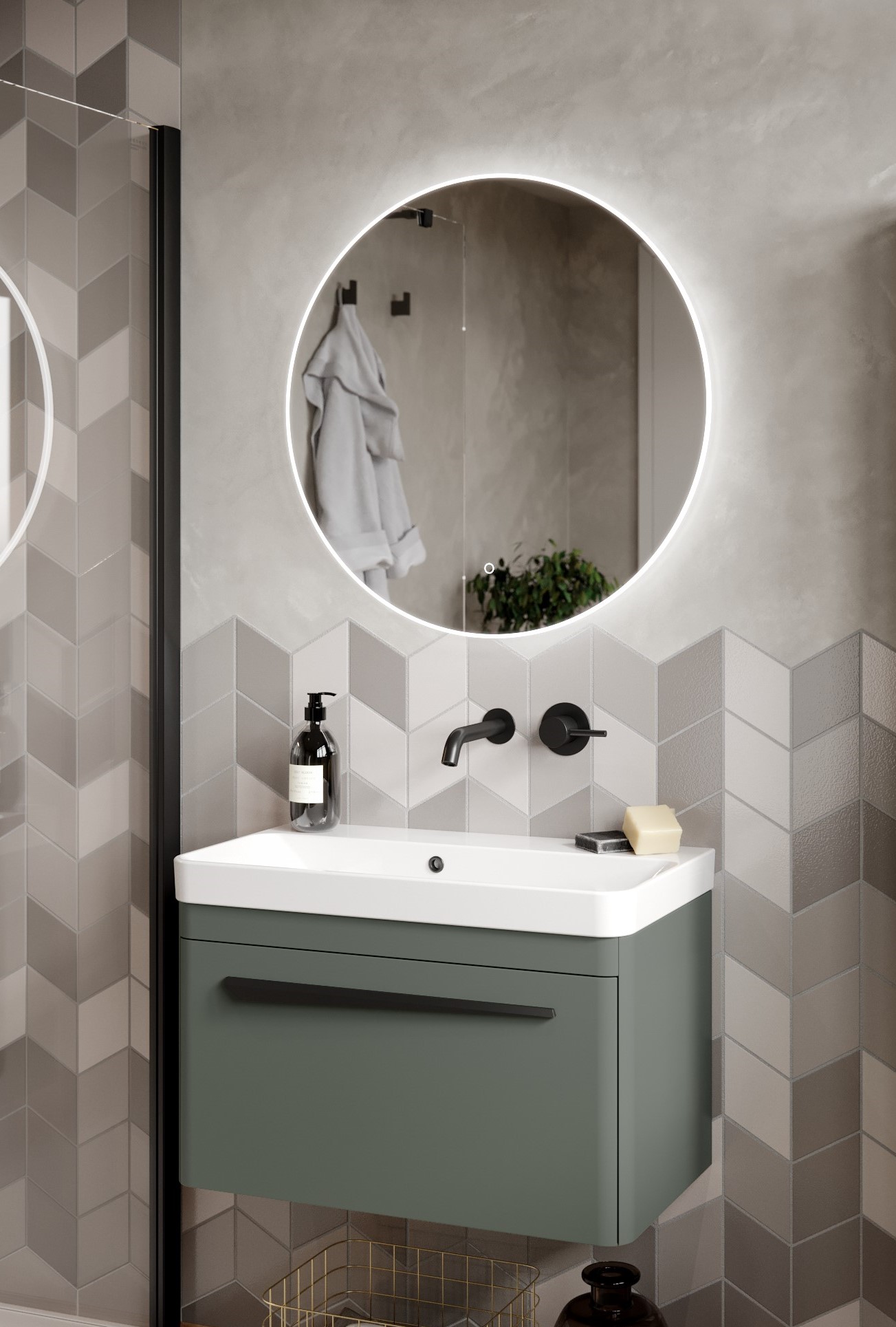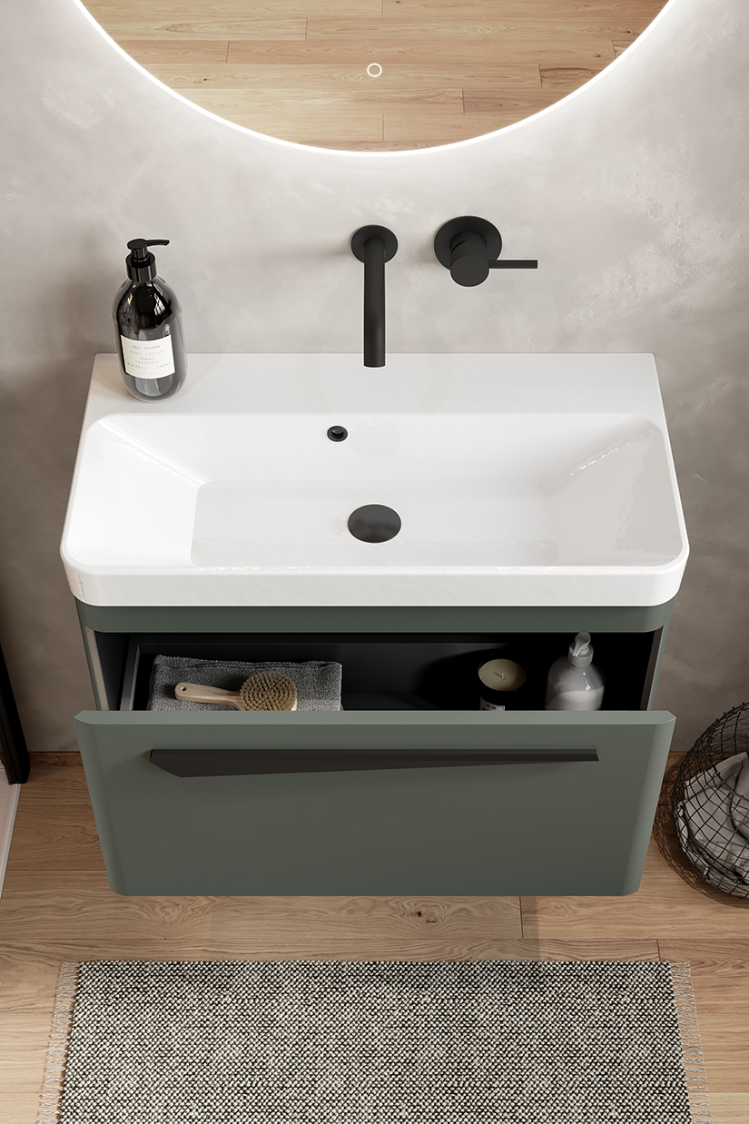 This 70cm 1 drawer wall mounted unit has a projection of only 37cm, making it perfect for bathrooms & cloakrooms where space is limited and storage is essential. It has a deep, soft closing drawer to hold plenty of toiletries, and the matte sage finish will make the space feel calming and homely.