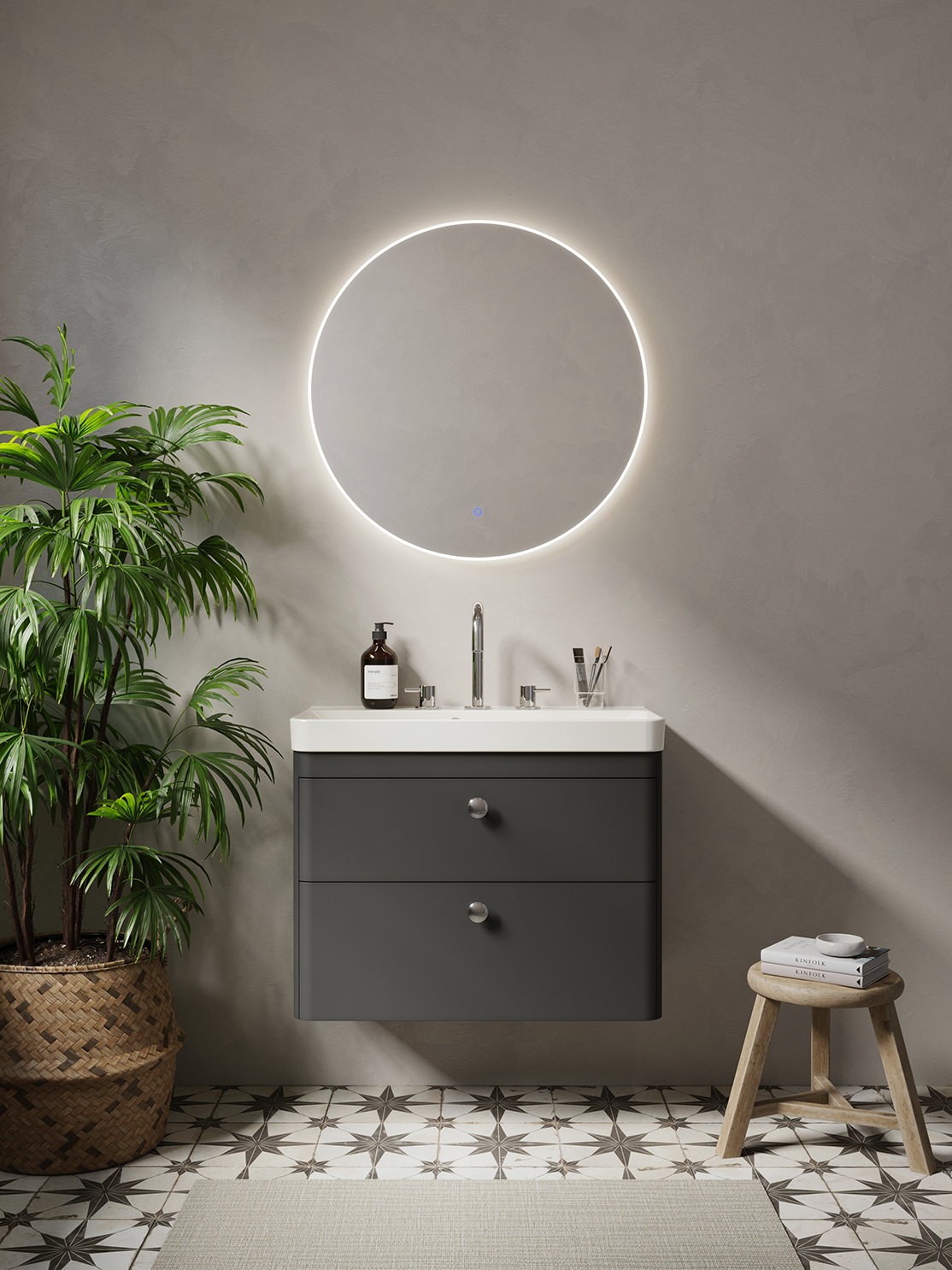 This 70cm 2 drawer wall mounted unit has a projection of only 37cm, making it perfect for bathrooms & cloakrooms where space is limited and storage is essential. It has two deep, soft closing drawers to hold plenty of toiletries, and the matte anthracite finish will add more depth to the space it's fitted in.
