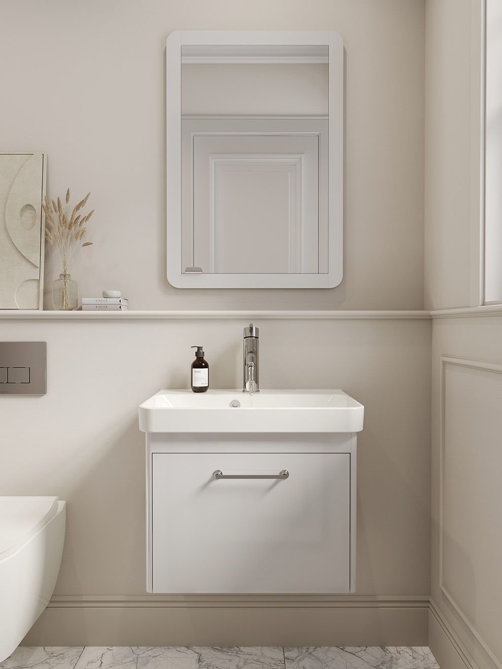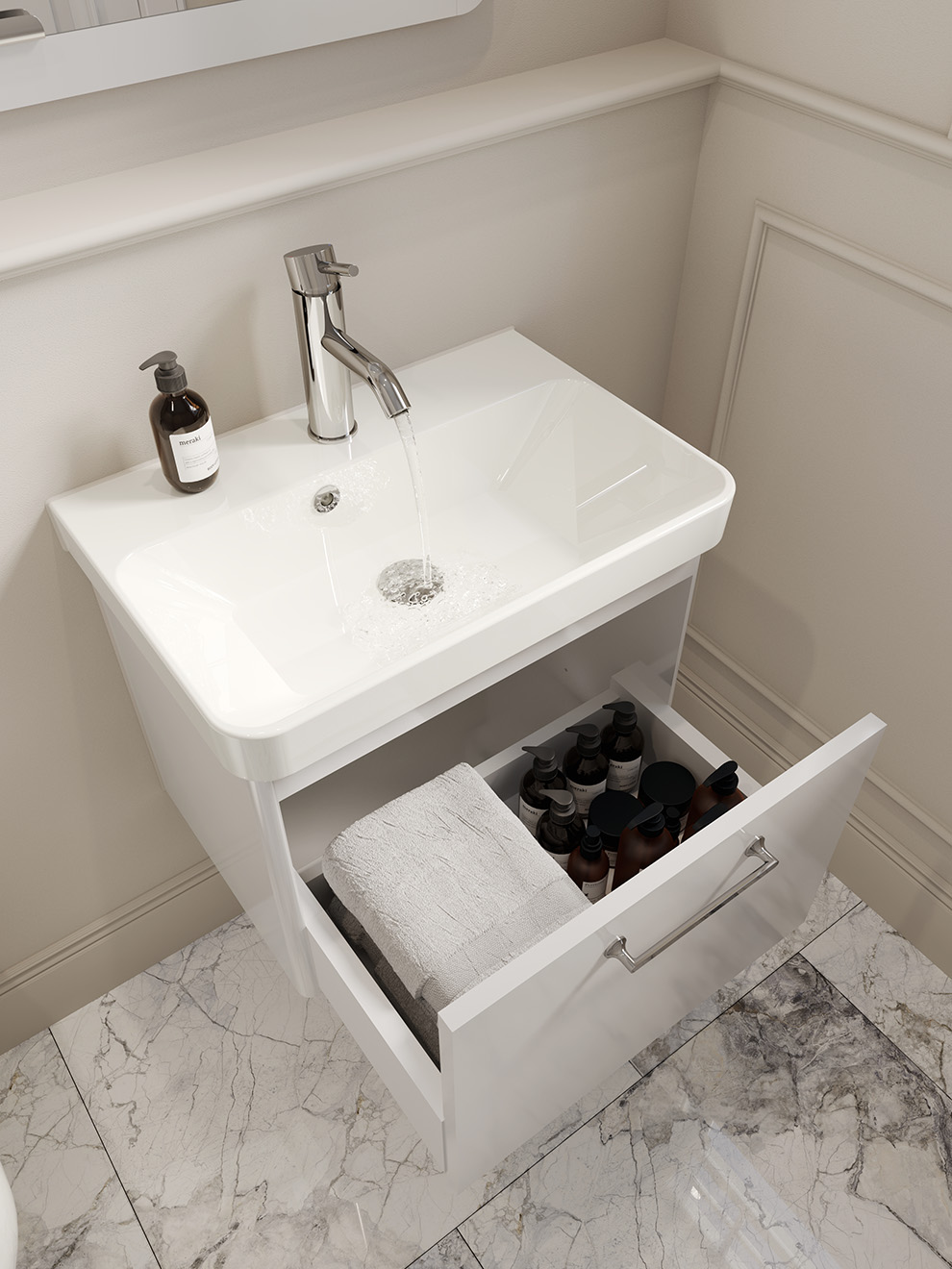 HYDE LITE 55cm washbasin & 1 drawer wall mounted unit - Gloss White
