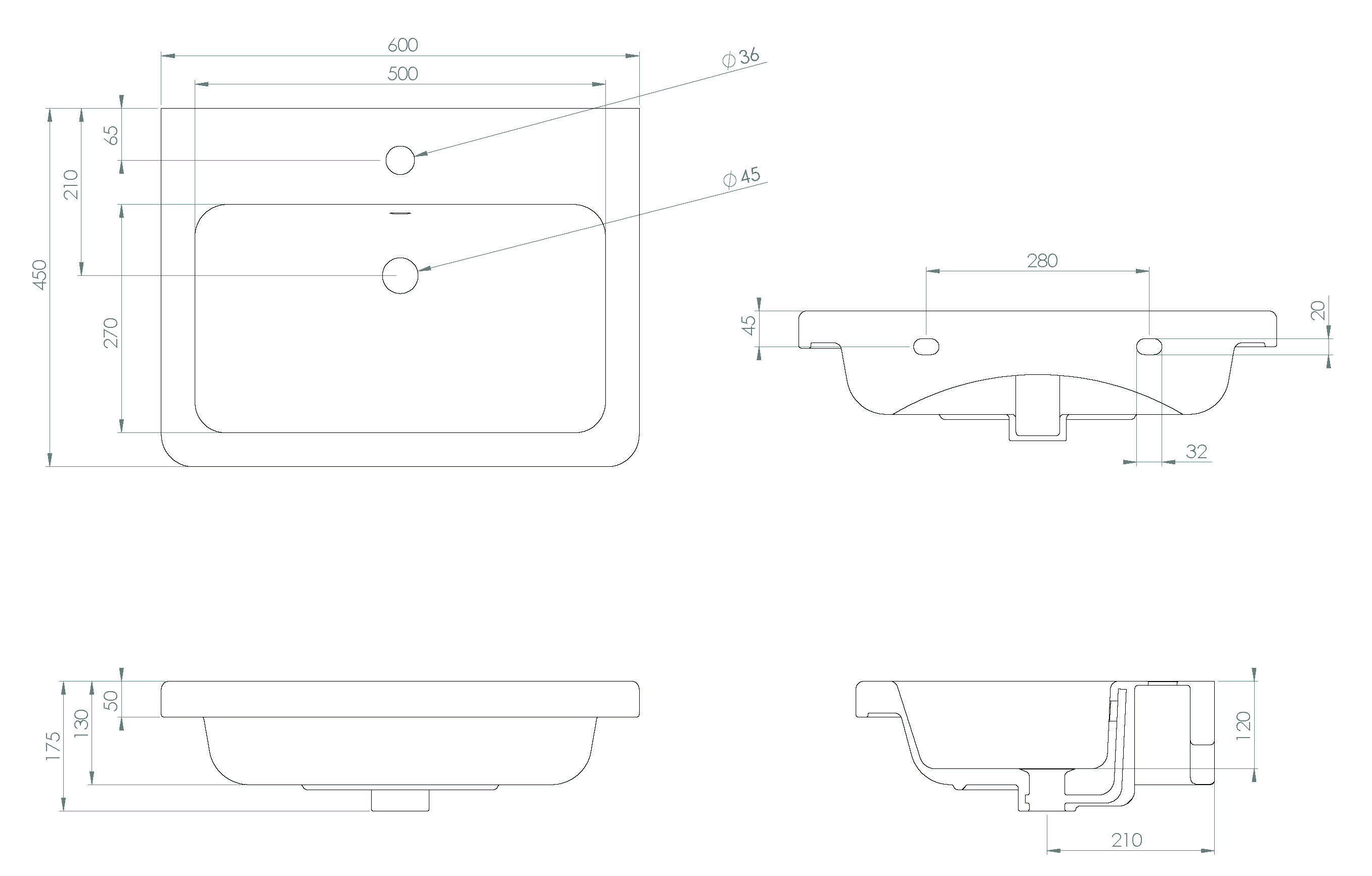 INDIGO 60x45cm washbasin 1TH