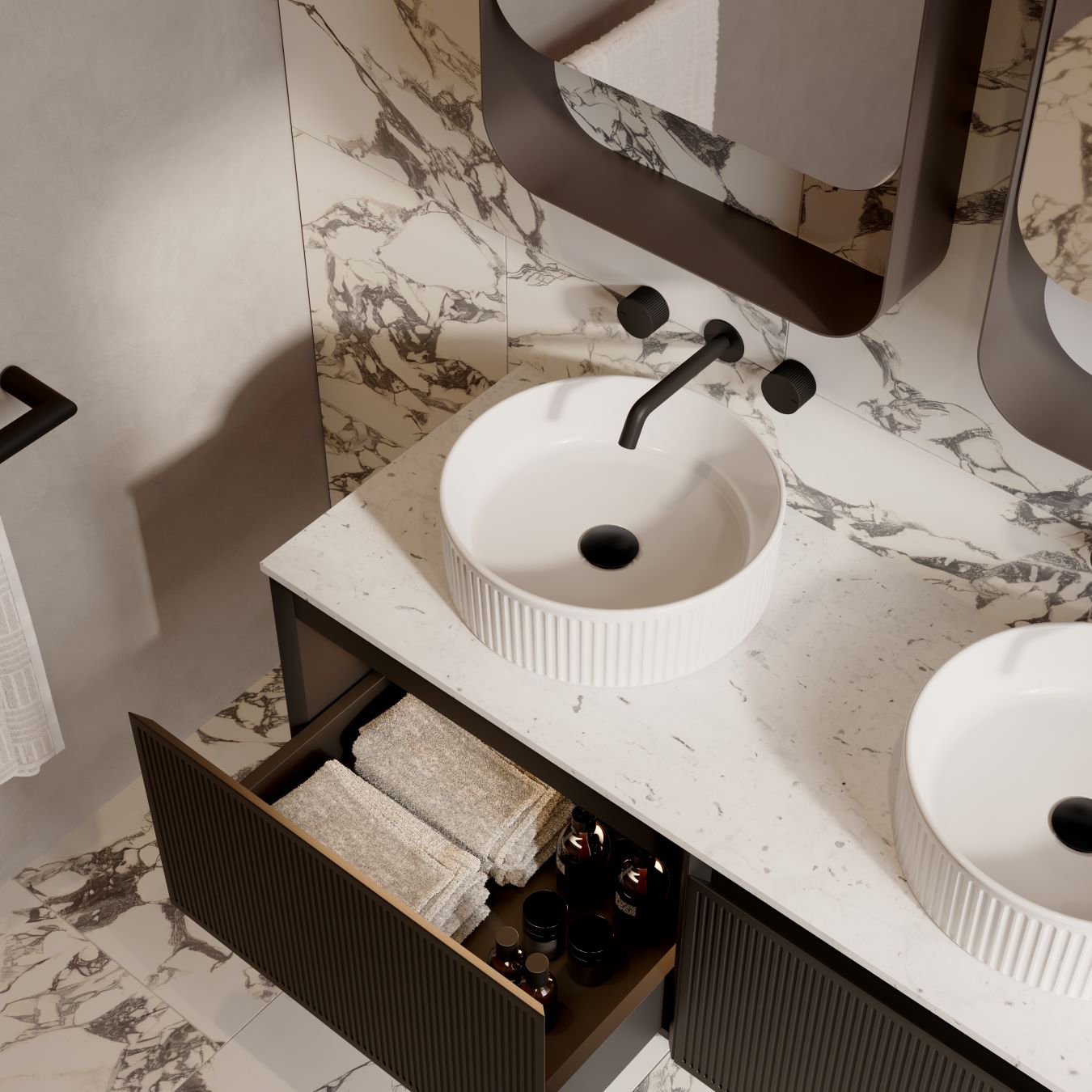 Experience versatility with our innovative design: pair any 60cm or 80cm unit with a 20cm spacer unit and a countertop, enabling you to create your perfect basin setup.