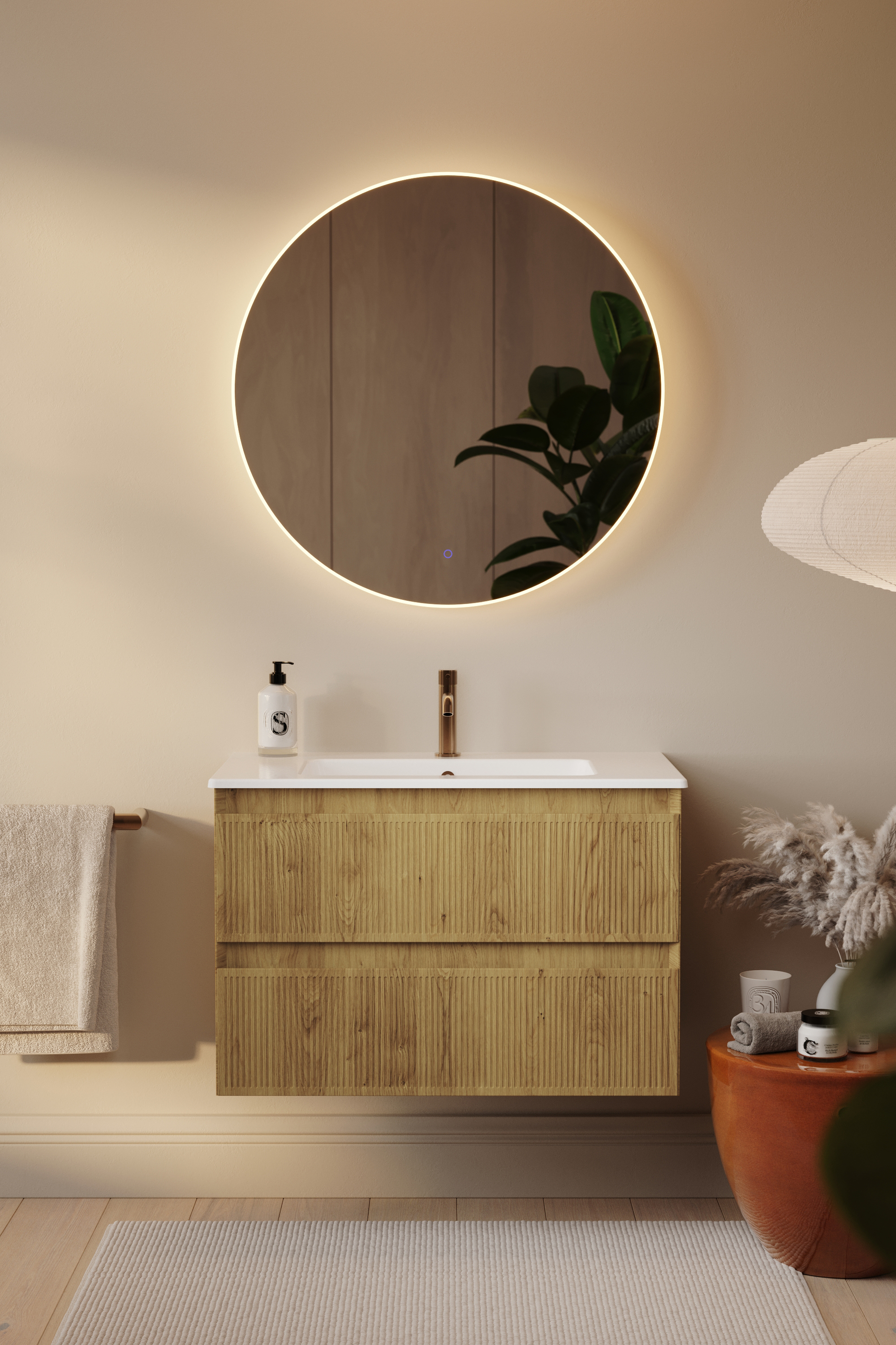 The Monument, built from Portland stone, stands as a timeless symbol of London. Inspired by this heritage, Portland Oak reimagines the reference in a warm oak hue. Available as a 2-drawer design in 60cm and 80cm, it combines Monument’s signature fluting with natural character for the modern bathroom.