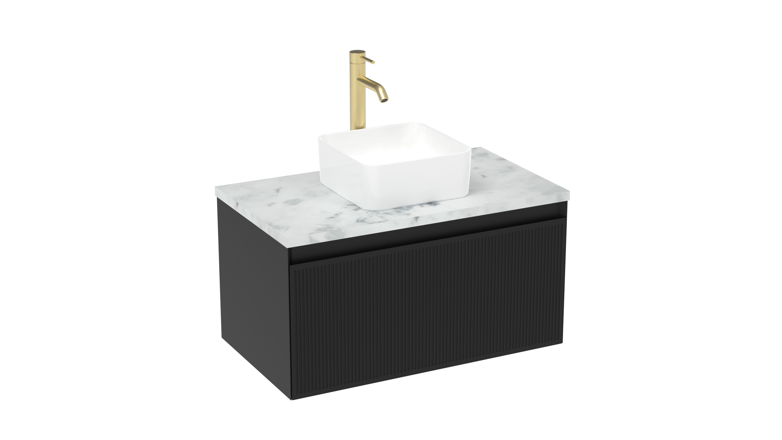 The handle-less 80cm 1 drawer wall mounted unit features plenty of storage space, a soft closing drawer, and a luxurious look that will stand the test of time.