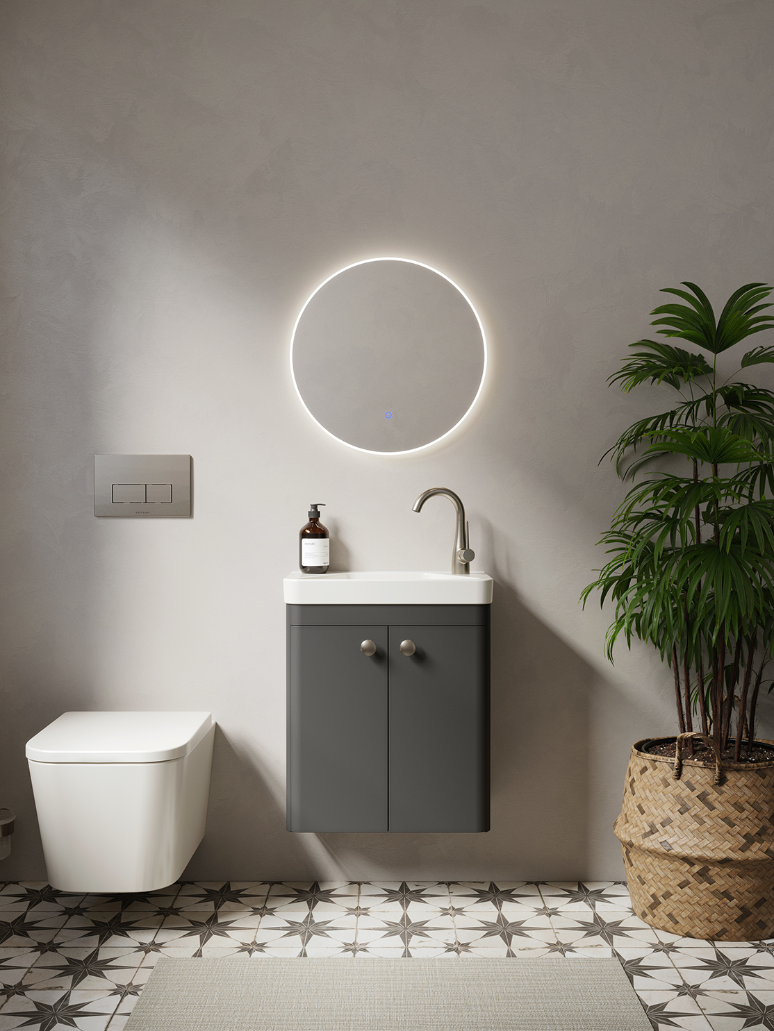 The OSKA 50cm mirror has various integrated features such as a colour changing perimeter LED light, a touch sensor and a demister pad, allowing you to tailor our product to your bathroom whether it is traditional or modern.