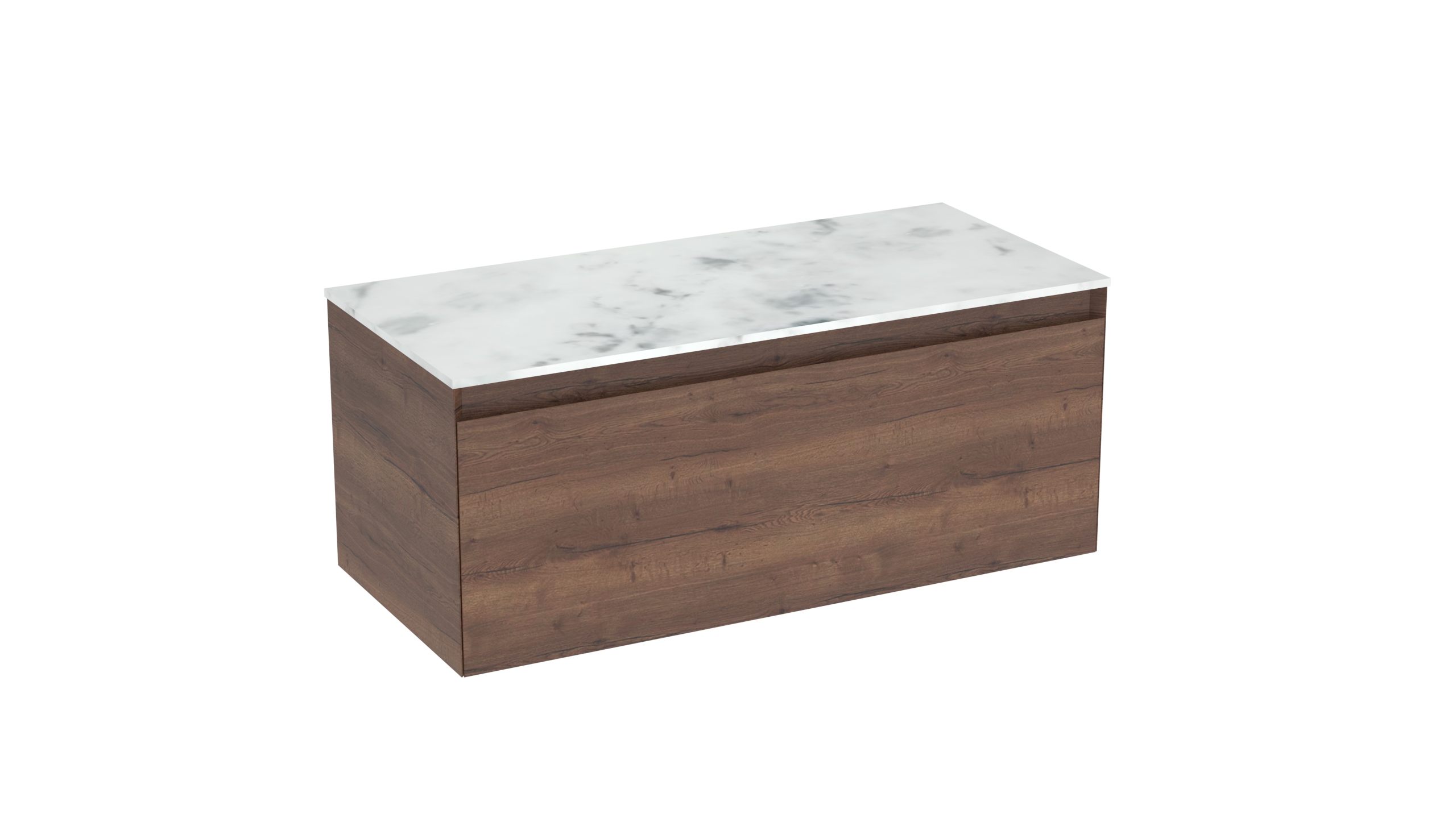 The 100cm 1 drawer wall mounted unit has plenty of storage space, and the finer detail of a soft closing drawer prevents slamming. Opt for the English oak finish to bring a natural element into your bathroom, and pair it with either a UNI countertop or UNI 100cm slim profile basin.