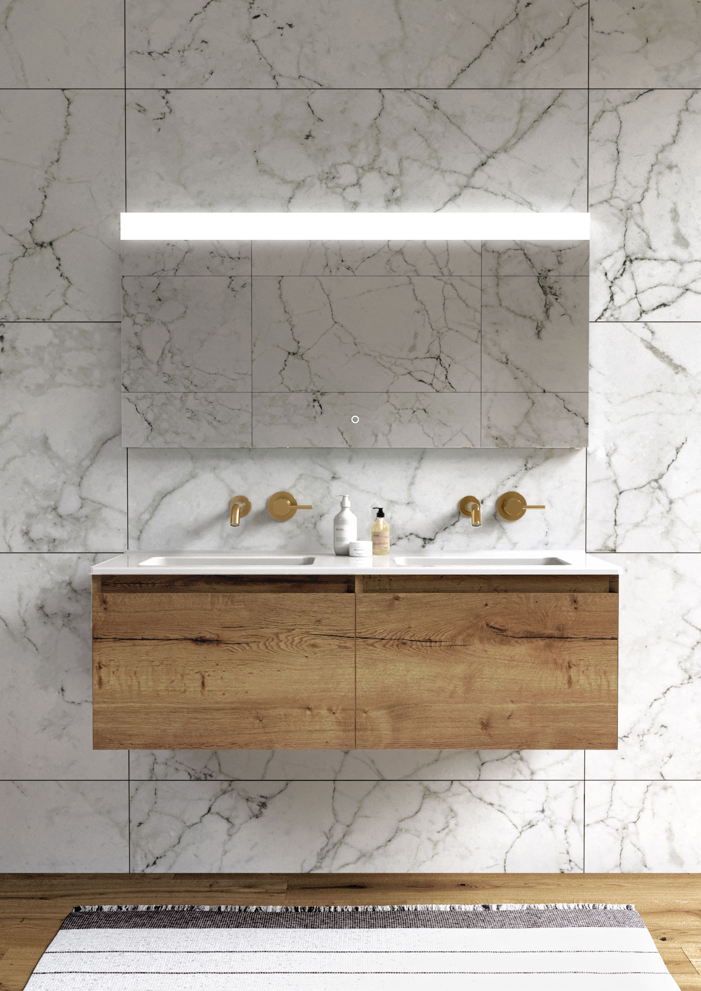 The 120cm 2 drawer wall mounted unit has plenty of storage space, and the finer detail of soft closing drawers prevents slamming. Opt for the English oak finish to bring a natural element into your bathroom, and pair it with either a UNI countertop or UNI 120cm slim profile basin with two bowls.