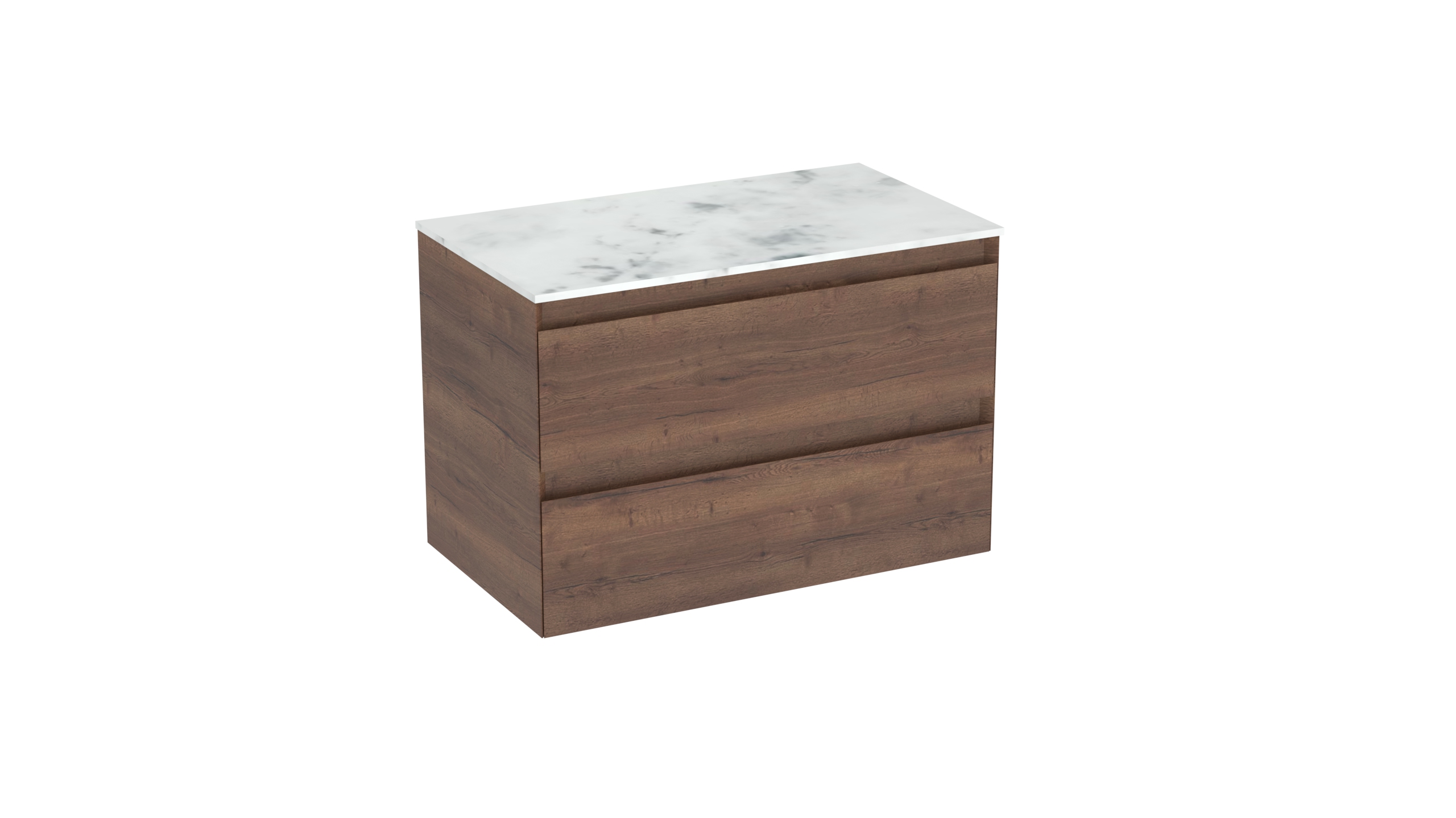 The 80cm 2 drawer wall mounted unit has plenty of storage space, and the finer detail of soft closing drawers prevents slamming. Opt for the English oak finish to bring a natural element into your bathroom, and pair it with either a UNI countertop or UNI 80cm slim profile basin.